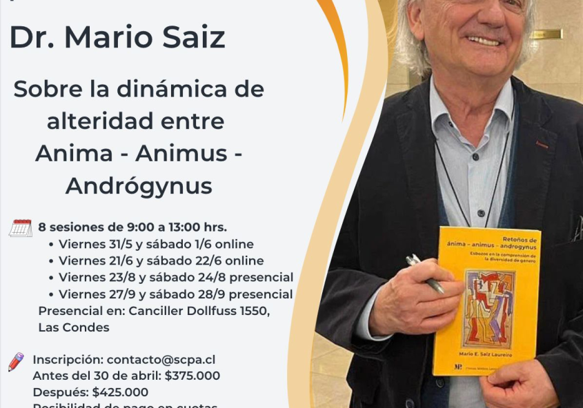 Seminario de profundización. “Sobre la dinámica de la alteridad entre Ánima – Animus – Andrógynus. Dicta el Analista Dr. Mario Saiz. Inicia el viernes 31 de mayo de 2024 Propuesta temática: Sesión 1 y 2: Desde el paradigma clásico al nuevo paradigma. Sobre el ánima: descripción, cómo explorar la en la clínica, exploración en los… -