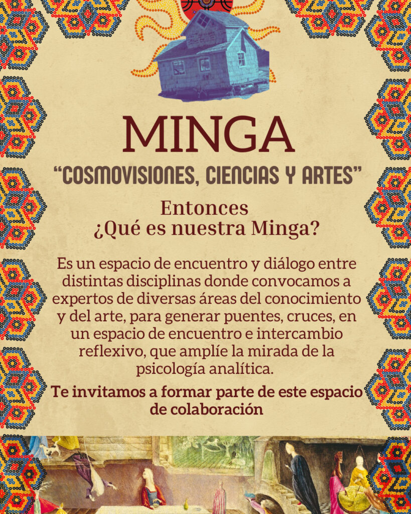 Esta Minga es un espacio que busca cruzar caminos entre disciplinas, reuniendo a personas de la ciencia, el arte y otros mundos del conocimiento. Queremos abrir el diálogo, crear puentes y nutrirnos de otras formas de ver y entender la realidad, ampliando así nuestra comprensión desde la psicología analítica.